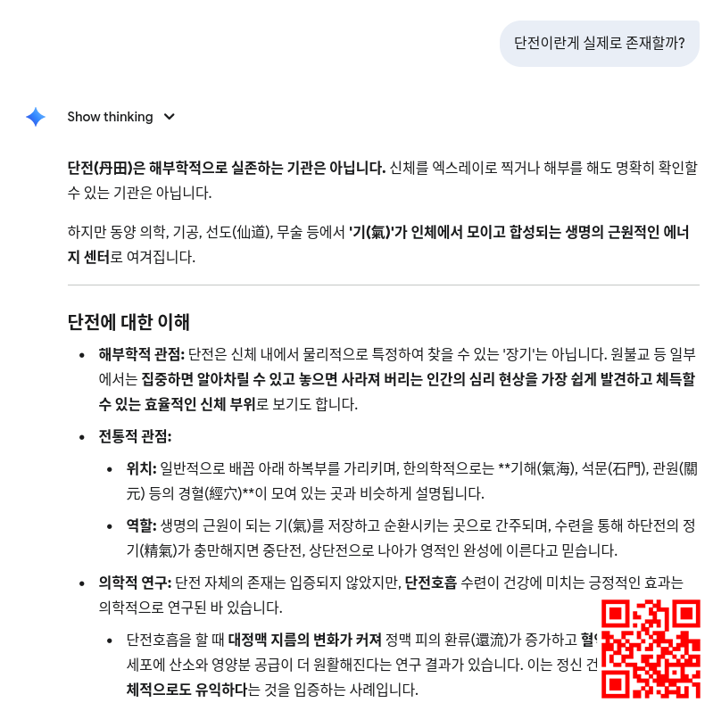 제미니> 단전(丹田)은 해부학적으로 실존하는 기관은 아닙니다. 신체를 엑스레이로 찍거나 해부를 해도 명확히 확인할 수 있는 기관은 아닙니다.