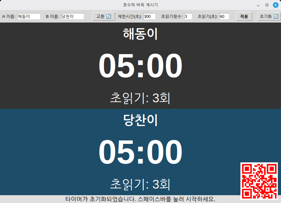 스페이스바 : 시작 및 턴 바꿈