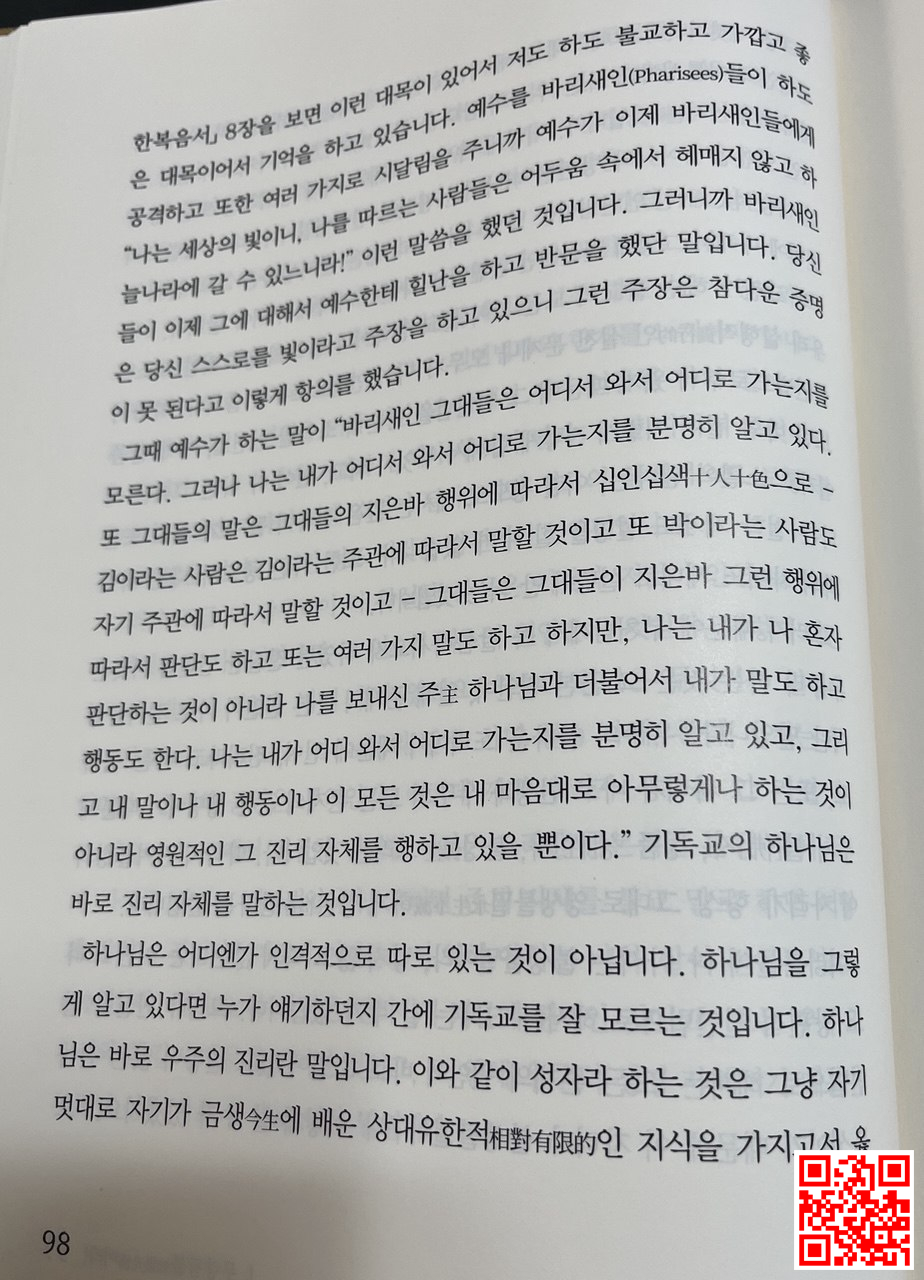예수님이 바리새인들에게 한 말을 수련 시간에 한 두번 한 적이 있다.