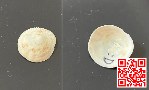 지난 주 코끼가 태국여행에서 돌아왔다. 태국 어느 바닷가에서 삿갓 모양의 조개를 주웠고, 안쪽에 웃는 그림을 그려 나에게 선물했다.